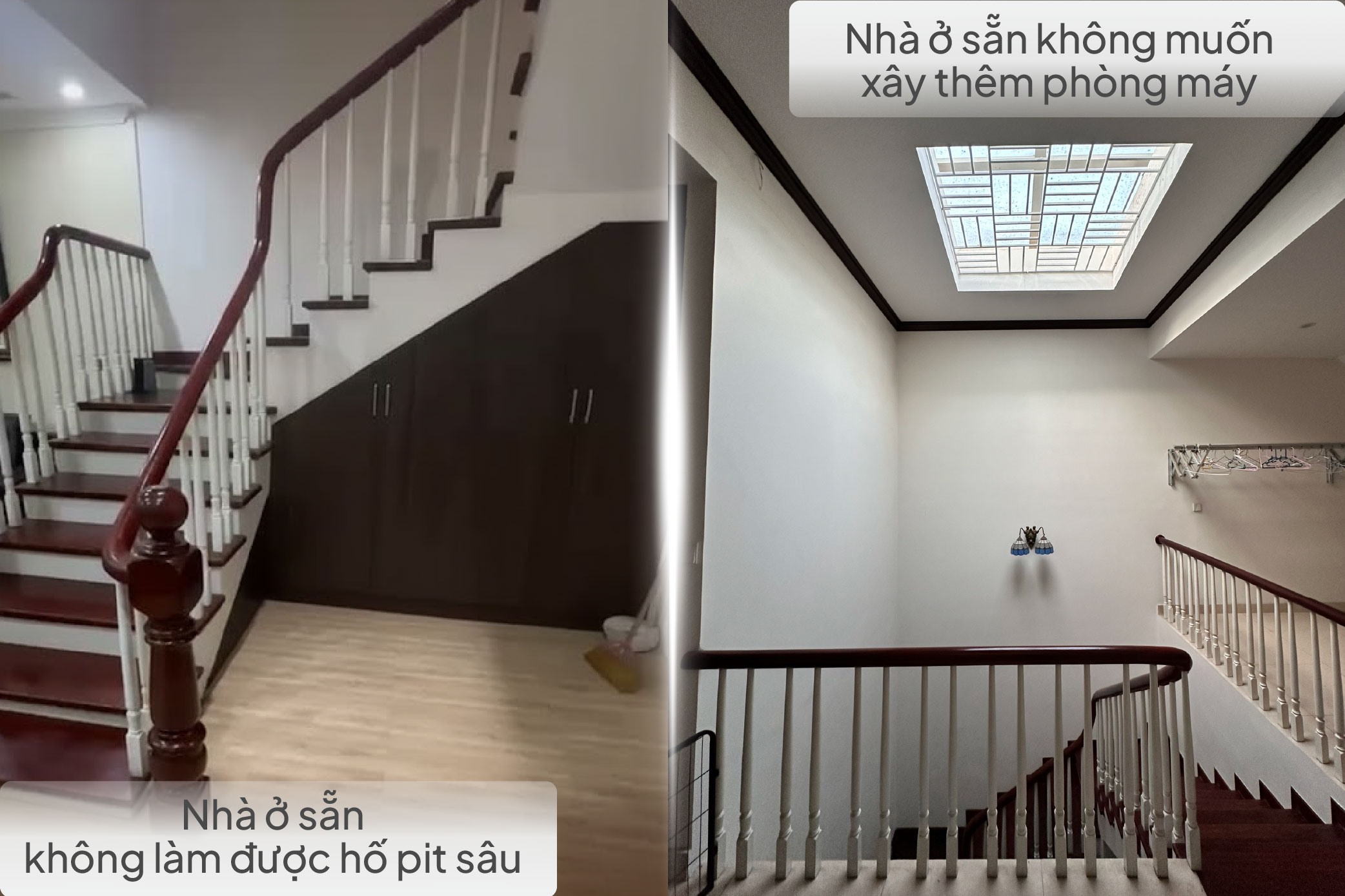 • Vấn đề: Vị trí giữa thang bộ rất hẹp, không thể lắp được thang máy