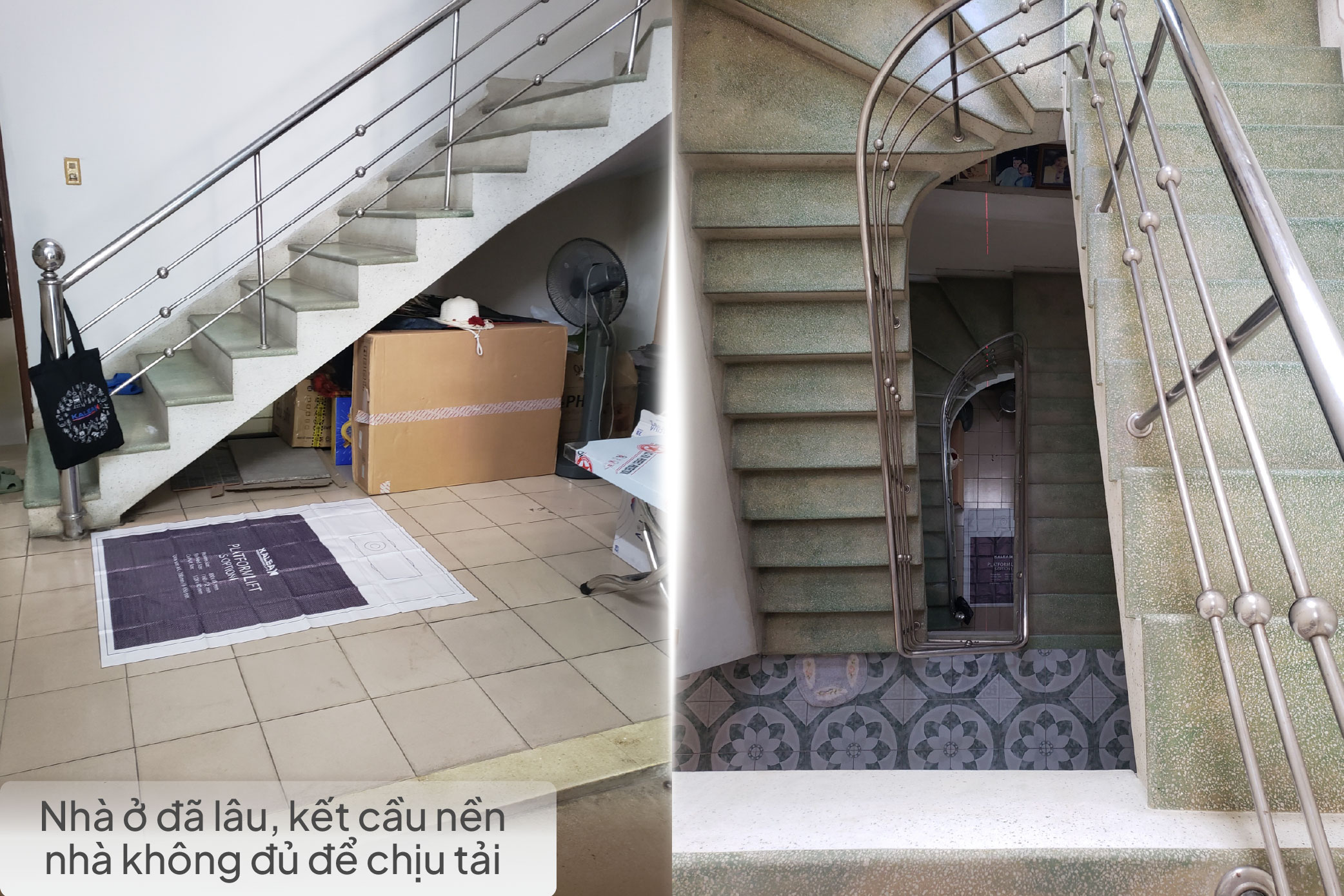 Nhà xây đã lâu không tính đến phương án thang máy. Vị trí lắp thang có nền móng không đủ để chịu tải thang.
